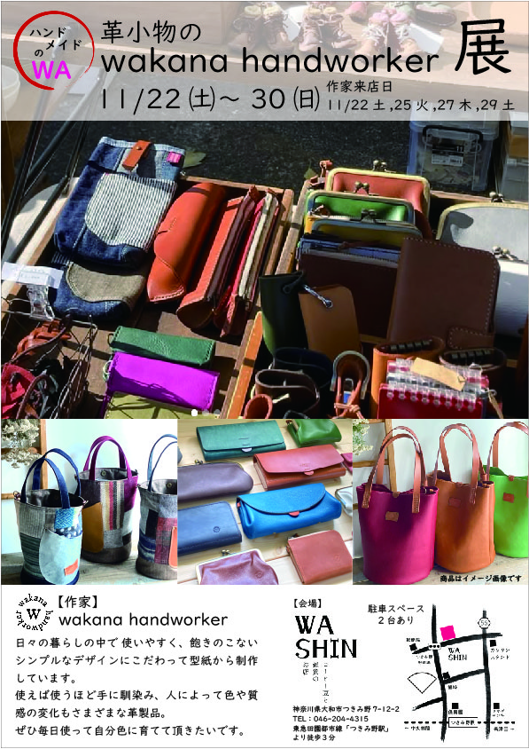 《ハンドメイドのWA》11/22(土)~30(日) 「革小物の〔wakana handworker展〕」開催のお知らせ